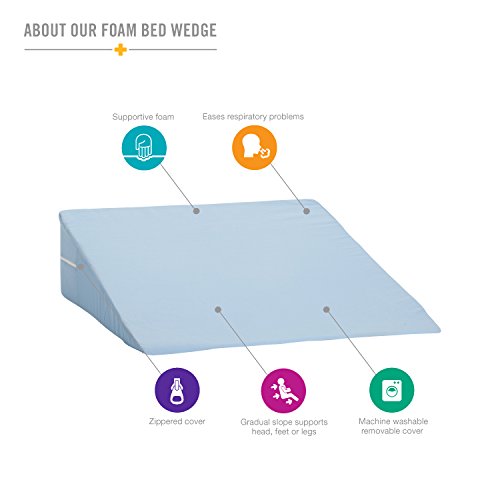 -. Feature : This best-selling slanted foam bed wedge is ideal for head, foot or leg elevation / Comfortable, gradual slope helps ease respiratory problems, acid reflux, neck and shoulder pain, back pain and knee pain / Supportive foam keeps its shape / Comes with a removable, zippered, machine washable polyester cotton cover / Size: 7 x 24 x 24 inches