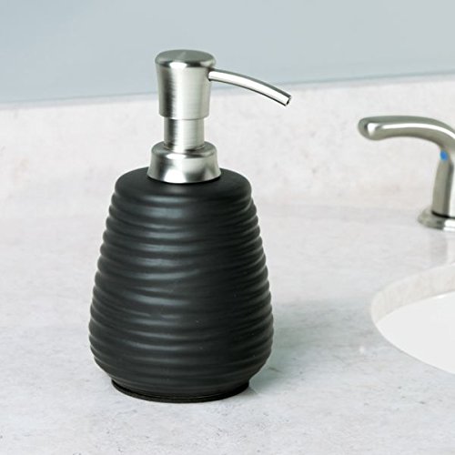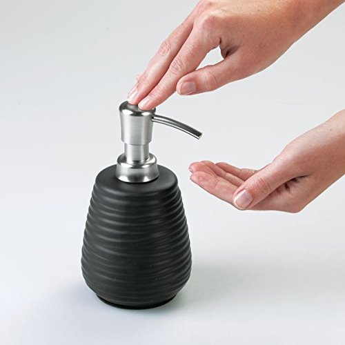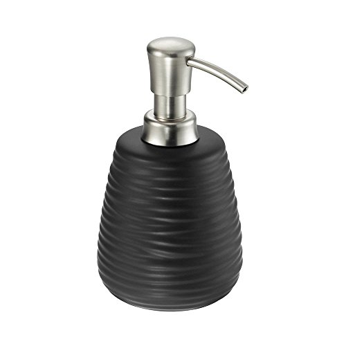 mDesign Kitchen and Bath Ceramic Soap & Lotion Dispenser 14 oz, Black/Brushed