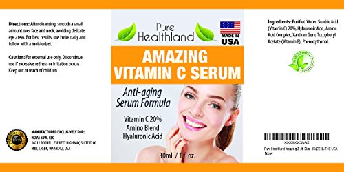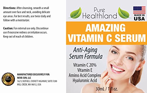 - Feature : ✔Vitamin C Serum For Your Face and Neck. Anti Wrinkle Serum Facial Skin Care Product. HELPS TO STIMULATE YOUR SKIN'S RATE OF EXFOLIATION FOR A BRIGHTER, SMOOTHER COMPLEXION. ABSORB DIRECTLY INTO YOUR SKIN, AND TREAT AGE SPOTS, WRINKLES AND FINE LINES. PREVENT OXIDATION DAMAGE CAUSED BY HARMFUL ELEMENTS LIKE SUNLIGHT, SMOKE, AND AIR POLLUTION. / ✔FAST SHIPPING directly from warehouses to you plus 5-Star Customer Service. A Great Gift for You and Your Loved Ones! We manufacture in FDA-Registered & Inspected, GMP-certified facility in USA. Top Quality. / ✔60-DAY Hassle Free 100% MONEY BACK GUARANTEE - You have zero risk to try our awesome product. If you are not completely satisfied within 60 days after purchase, you get you money back. Just click "Add to Cart" now to give it a try. / ✔STIMULATE THE SYNTHESIS OF COLLAGEN WHICH MAKES YOUR SKIN APPEAR YEARS YOUNGER AND MORE VIBRANT. HELPS TO SHRINK PORES, CLEAR UP ACNE, PREVENT BREAKOUTS. Vitamin C is 20 times more effective than taking it orally to replenish your skin's vitamin C levels that naturally decline over time. COMBINING VITAMINS C AND VITAMIN E TOGETHER WILL GIVE YOU A SUPER POWERFUL ANTI-AGING PUNCH. FDA Disclaimer *These statements have not been evaluated by the Food and Drug Administration. This product is not intended to diagnose, treat, cure or prevent any disease. / ✔Customers Feedback - I use this stuff religiously! It really does work! I wear makeup all the time and I know after prolonged use it makes you age a little bit quicker. I use this in the morning and evening before I put on my moisturizer and I can see and feel such a change in my skin. My skin is blemish free and extremely soft. I've even got my friends hooked and their frown lines are starting to diminish! I would give this product 10 stars!! "The people who own and run this company are very attentive to their customers since it is a small family run business. I really like knowing that I'm not dealing with a large corporation but with people like me who are concerned with their health and are doing their best to bring us a great food based vitamin & mineral supplement. Give them a try for yourself I'm sure you won't be disappointed- I'm so glad I did."
