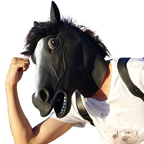 Please note When you first open the packaging it may have a little latex odor. Just let it air out for a while and that took care of itWhen you first open the packaging it may have a little latex odor. Just let it air out for a while and that took care of it. You can put a small towel or tea towel inside the head to give padding. Package Included: 1 xBlack Horse Head Latex Mask