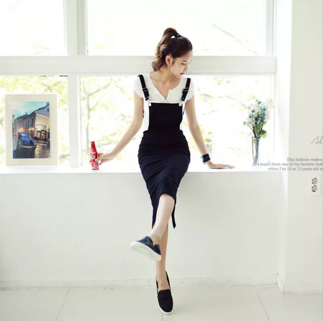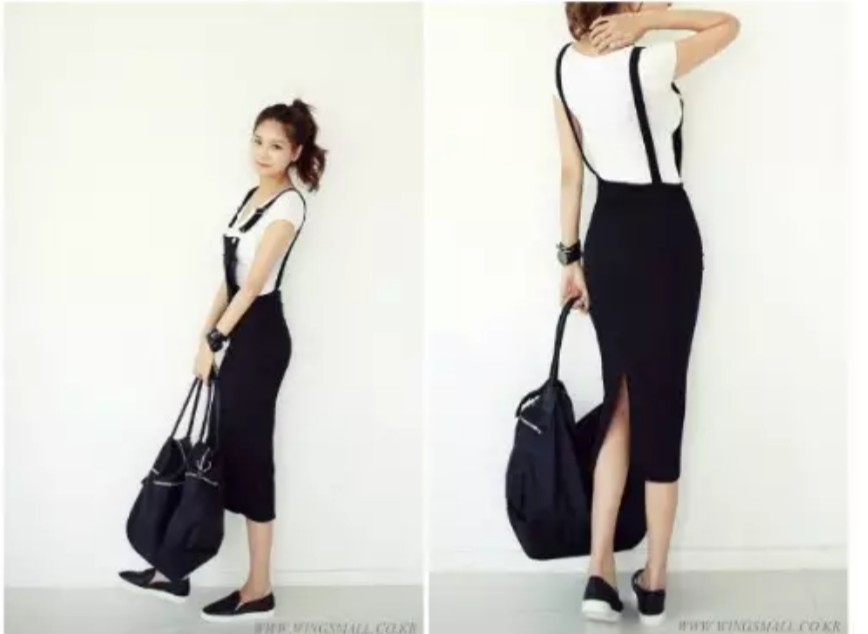 ストラップは長さ調節可能です。スカート後ろにスリットが入っていて動きやすいです。