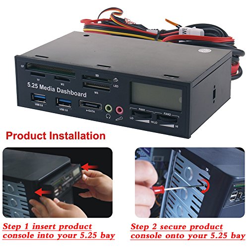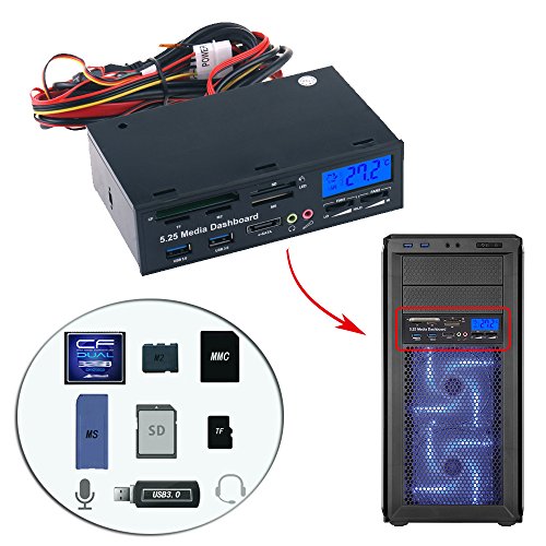 Tccmebius TCC-525F 5.25 Inch PC Multifunctional Dashboard Media Front Panel, With LCD Temperature Fan Controller e-SATA Dual USB 3.0 Audio Ports and 5-in-1 Card Reader (SD / MMC / CF / MS / TF / M2)