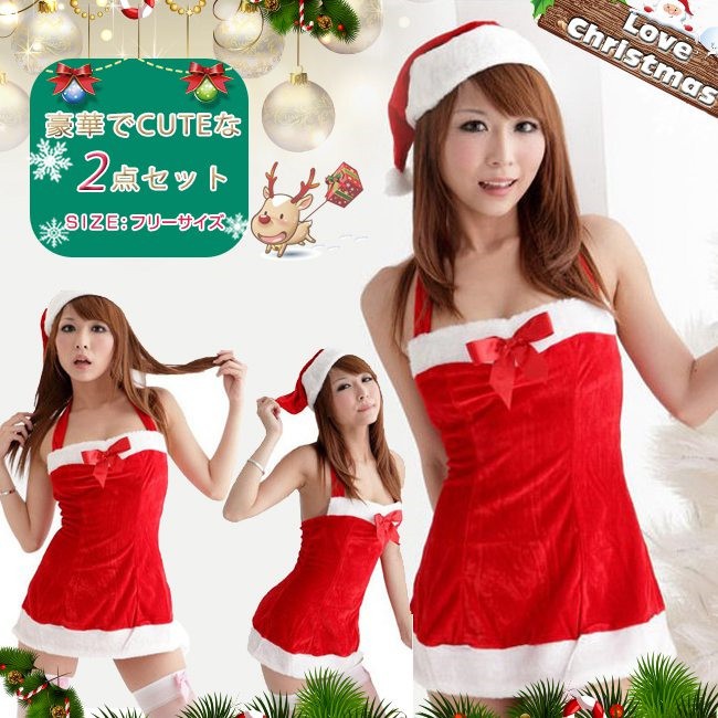 クリスマス コスプレ レディース セクシー サンタ 衣装 ホルターネック ミニ ワンピース 帽子 コスチューム サンタコス 仮装 変装 大人 服 サンタクロース セットアップ かわいい パーティーグッズ イベント用品 余興 xmas Christmas cos 女性用