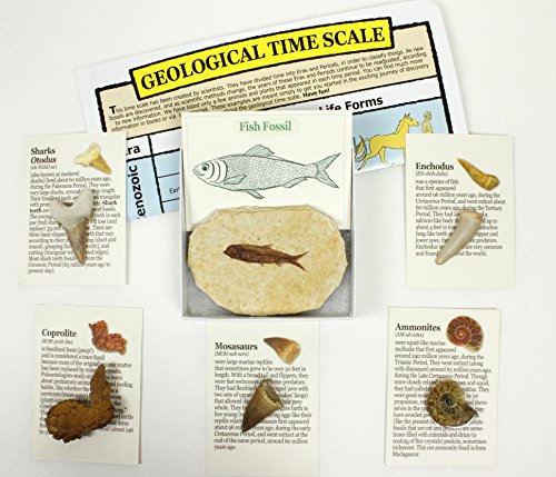 -. Title : 6 Pc Deluxe Fossil Education Collection Set with Fish fossil (Knightia Eocaena), Coprolite (turtle poo!), Shark tooth (Otodus), Fish tooth (Enchodus), Mosasaurs tooth, and Ammonite! Dancing Bear Brand