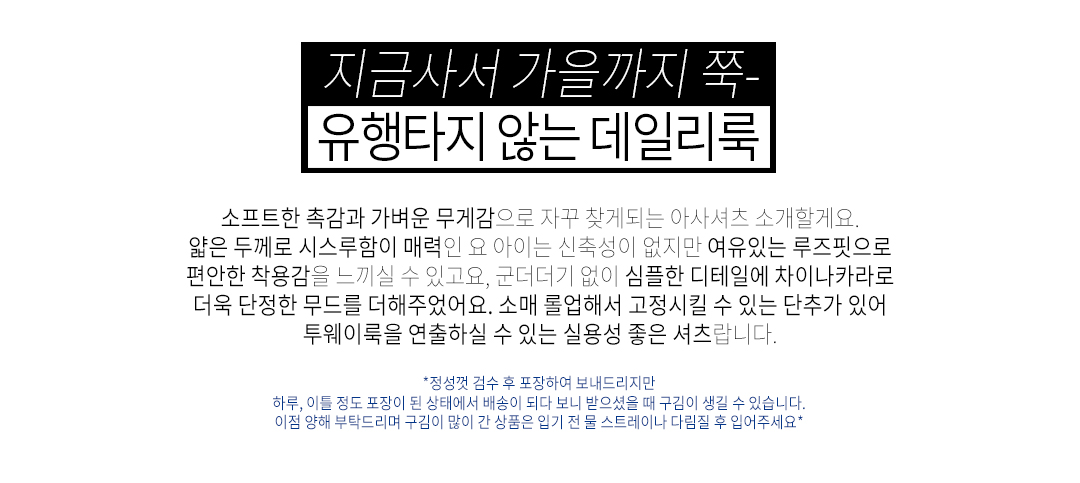 .같은 사이즈라도 체형에 따라 핏감이 조금씩 다를 수 있습니다.