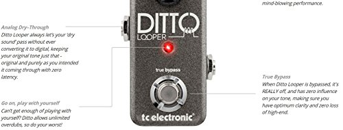 Ditto Looper is the only looper designed specifically for guitarists. It combines all essential looper functionalities with an intuitive one-button UI, a true-bypass, analog dry-through design, ultra-small footprint and 24 bit uncompressed high quality audio. With 5 minutes looping time, unlimited overdubs and undo/redo functionality, Ditto Looper is the perfect blend of quality, creativity and simplicity.Feature