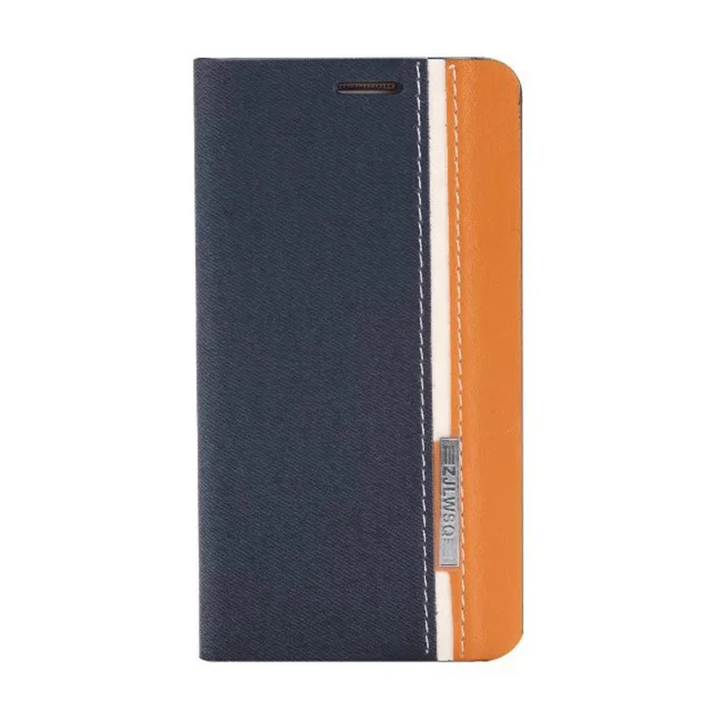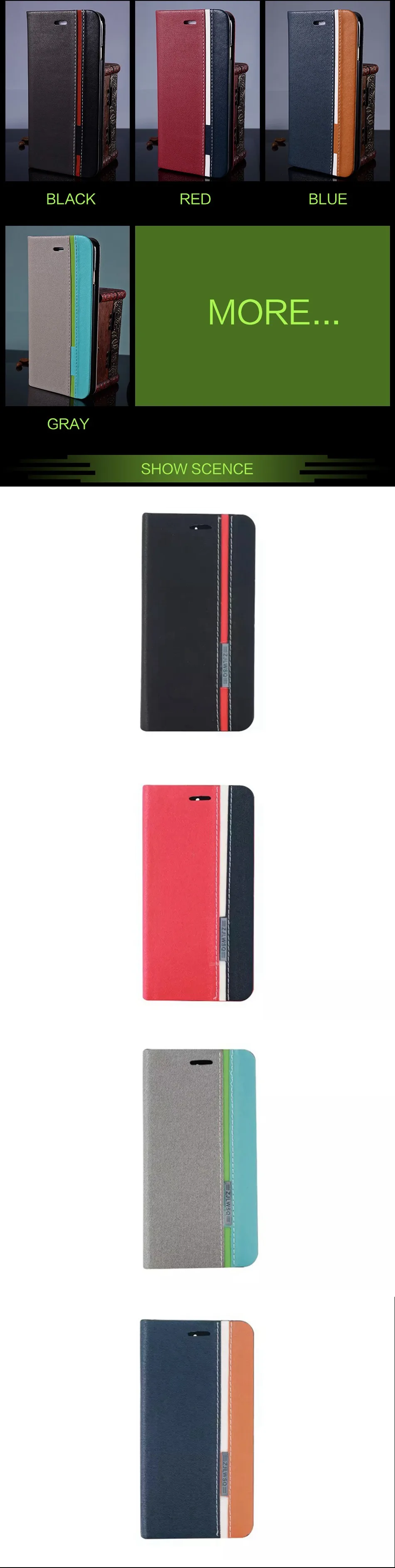 Style:Tri-color Stitching Canvas Book Style Stand Funcation Flip Card Holder