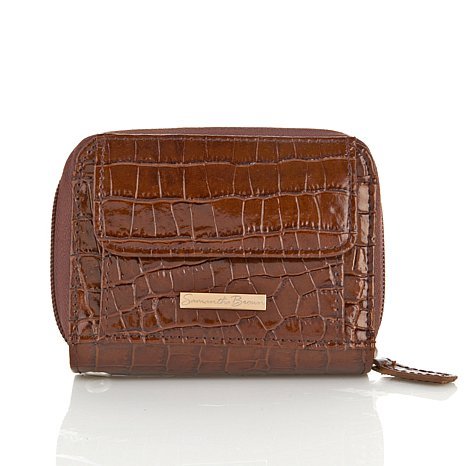 Samantha Brown Cash-Card-Coin Leather Accordion Wallet Keep important cards and cash safe in this leather wallet. Croco-embossing gives it a great touch to complement any style. Use it for travel or for the day-to-day to secure valuables.