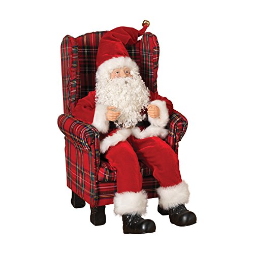 Gerson 16.2 Inches Height Polyester Holiday Santa Sitting In Plaid Chair Home Decor Accent