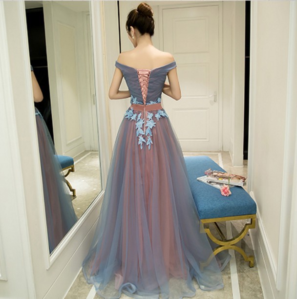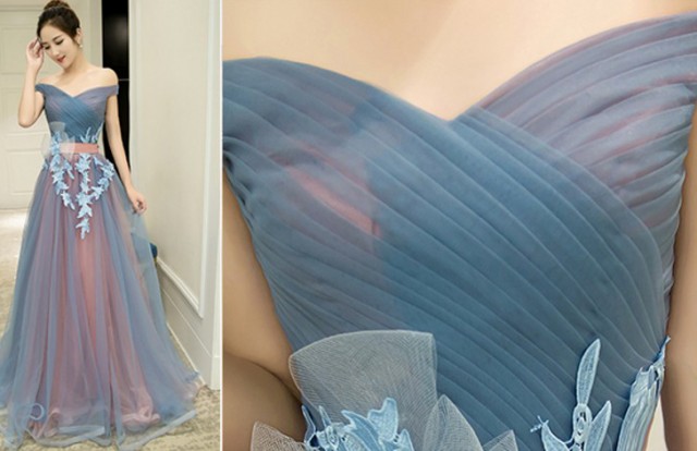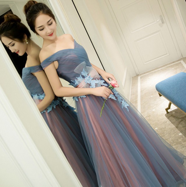 オフショルダー&Aラインで女性らしい美ラインを演出
