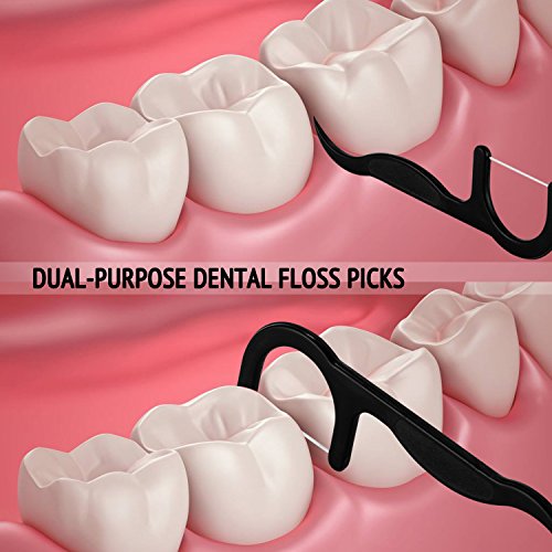 DUAL-PURPOSE DENTAL FLOSS PICKS: Use the end as a toothpick to remove any big food debris easily and the flosser for detailer cleaning. Its ultra strong floss never shred, break, or even stretch so you can count on a consistent and reliable experience each and every use. Use with the charcoal teeth whitening powder and the bamboo toothbrush to make your pearly whites shine bright!