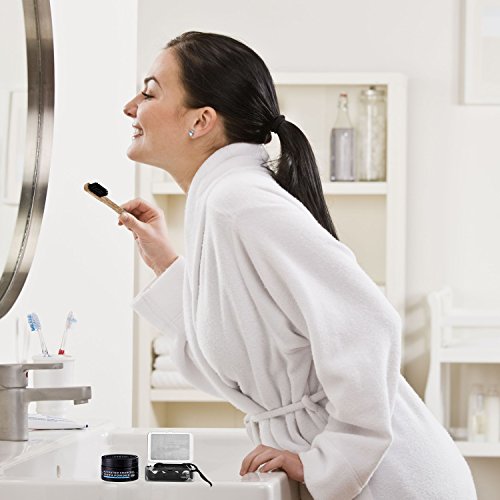 PREMIUM QUALITY BAMBOO TEETHBRUSH: This charcoal infused toothbrush features its ultra soft bristles to save your enamel and protect your gums. It's a best match to the charcoal teeth whitening powder to safely whiten and care your teeth!