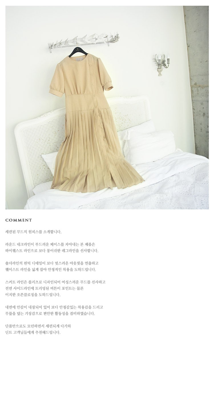 D3592 마일드 버튼 아코디언 플리츠 원피스 Beige