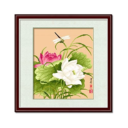 DOMEI Stamped Cross Stitch Kit, Dragonfly on Lotus, 17.3 x 19.3inches