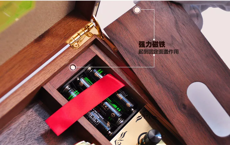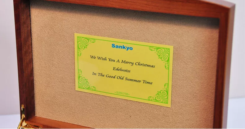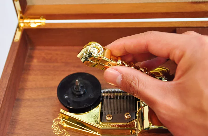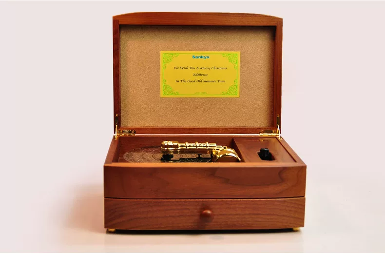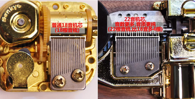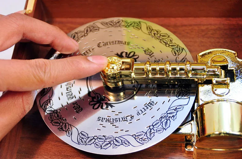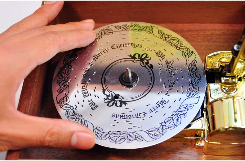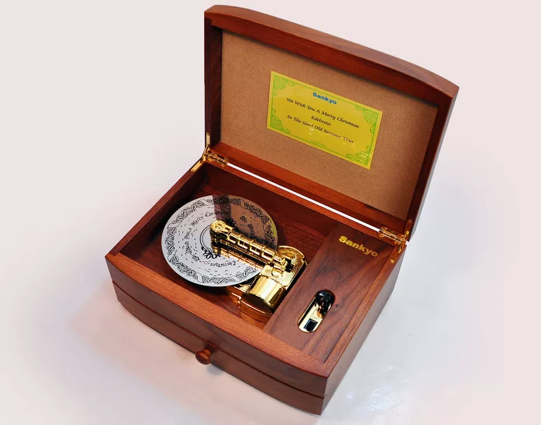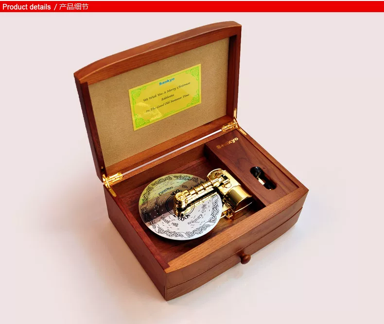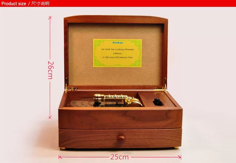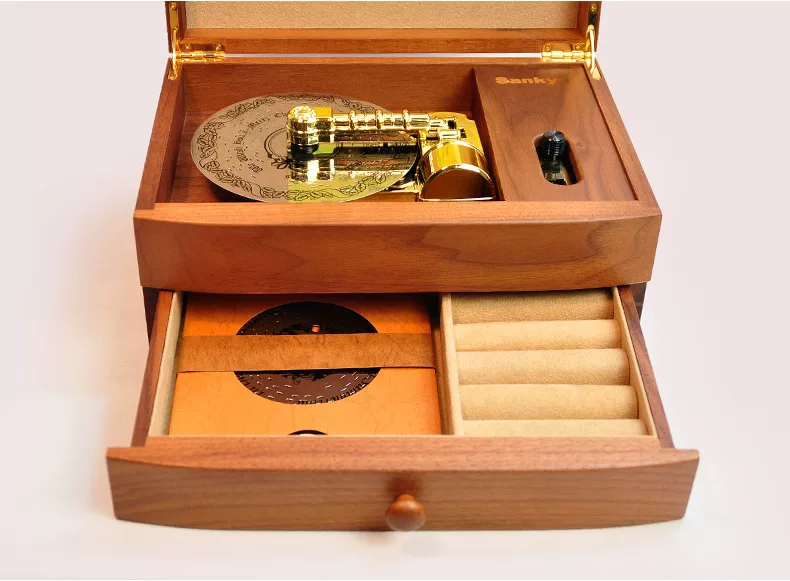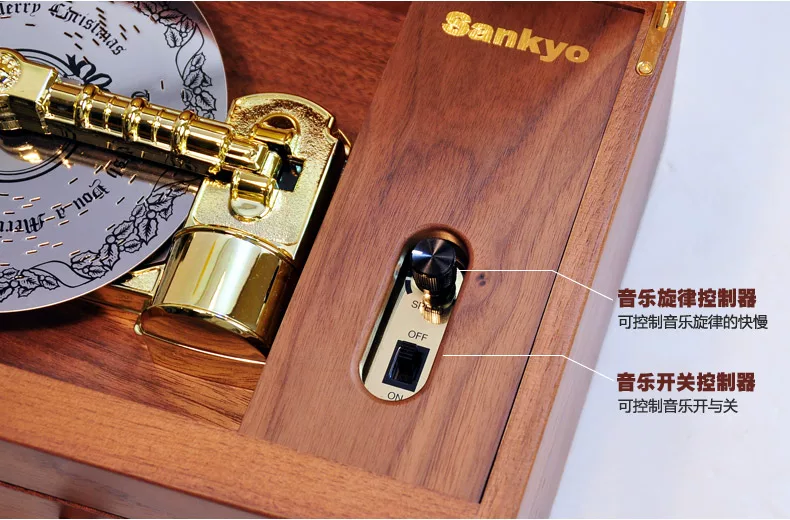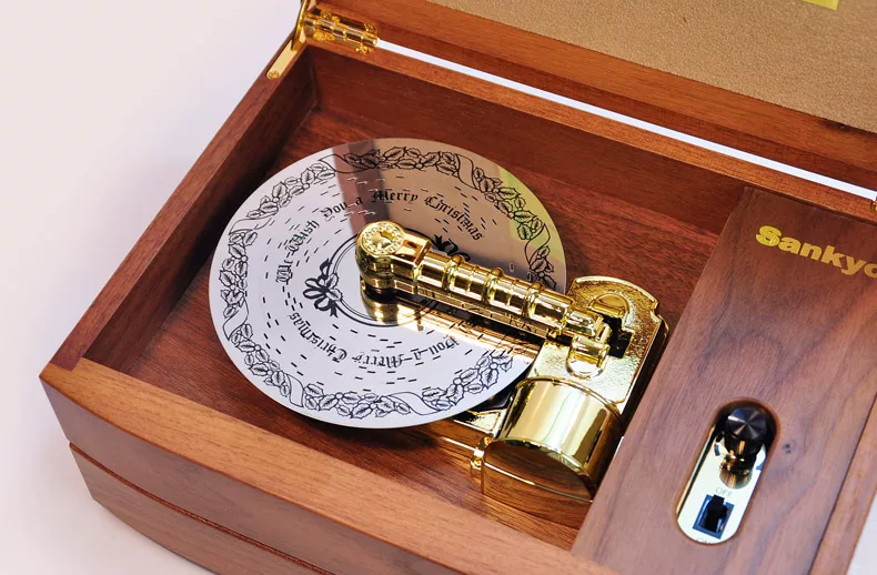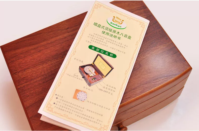 以唱盘为主题,采用胡桃木制作,再加上22音日本sankyo机芯(由内部电动装置带动发音)