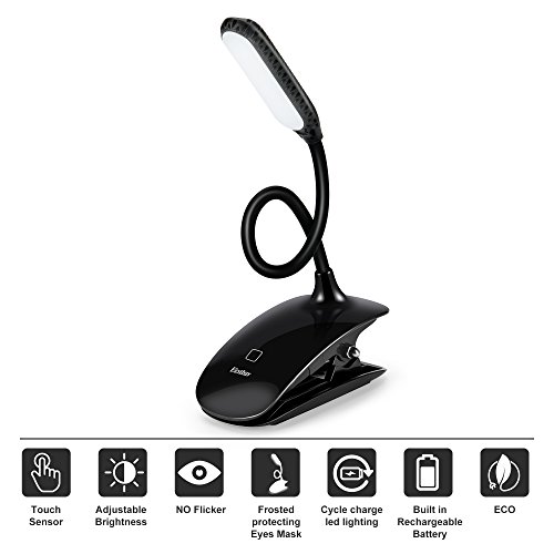 LENPOW Clip on Book Light, Touch Switch 3 Levels Brightness Reading Lamp, 360°Adjustable Travel Reading Light, USB Rechargeable, Portable Desk Lamp with Good Eye Protection for Readers, Kids, Children