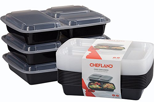 CHEFLAND 3-COMPARTMENT MICROWAVE SAFE FOOD CONTAINER WITH LID/DIVIDED PLATE/BENTO BOX/LUNCH TRAY WITH COVER, BLACK, 10-PACK