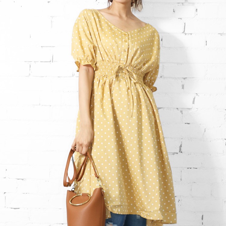 実寸:着丈 106cm 肩幅 51cm バスト 82cm 袖丈 20cm 袖口幅 10-20cm 脇口幅 23cm 裾幅 108cm