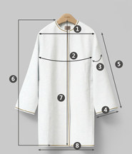尺码 ①肩宽 ②胸围 ③袖臂围 ④袖口围 ⑤袖长 ⑥前衣长 ⑦后中长 ⑧下摆围