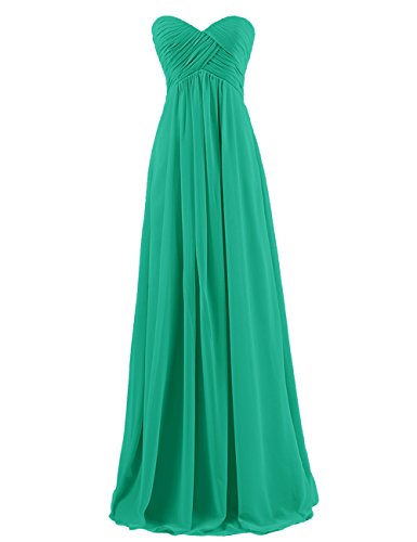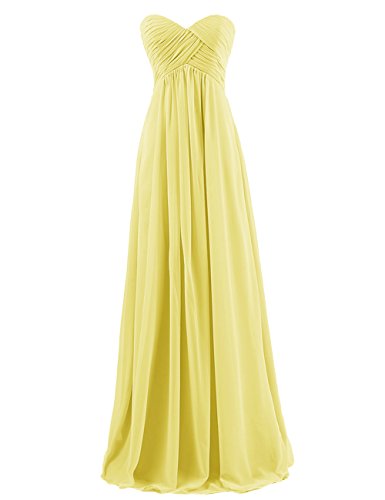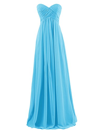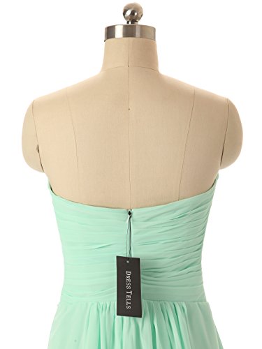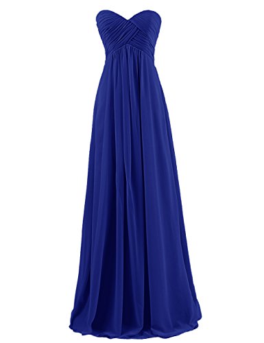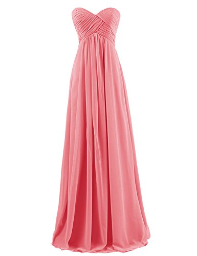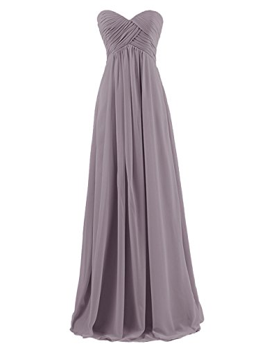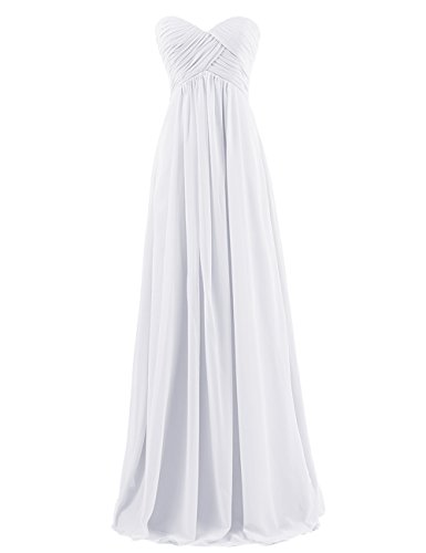 With its sweetheart neckline, formfitting bodice, empire waist, zipper-up back, and long chiffon skirt, this ethereal frock is worthy of celebration!