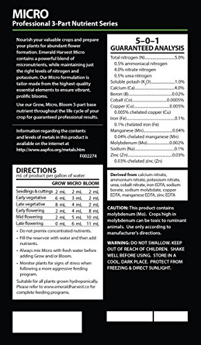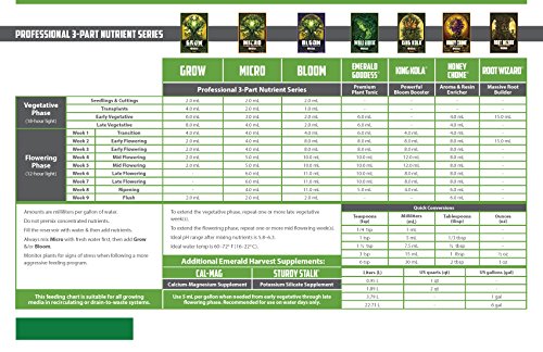 Give your crops what they need when they need it most with emerald harvest grow, micro, bloom 3-part base nutrient Series