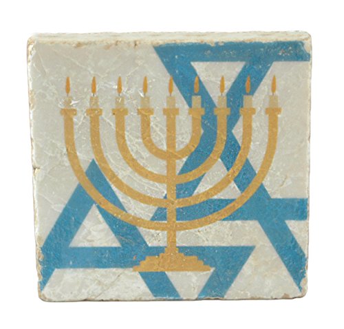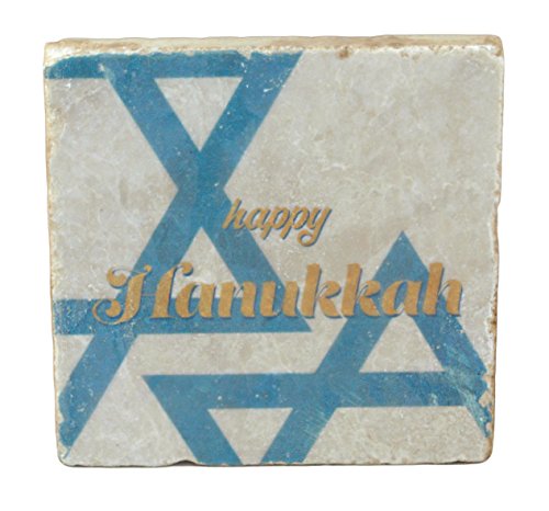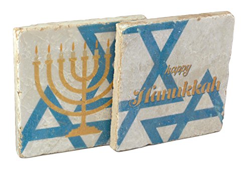 Happy Hanukkah Handmade Botticino Marble Coaster - Set of 2