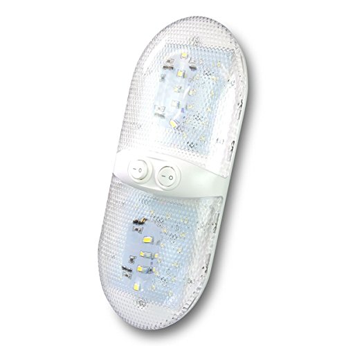 11-18V LED Double Dome Light Fixture comes with two 921 Wedge base, 2 x 275 Lumens, Cool White (6000-6500K)