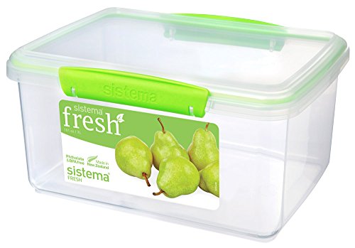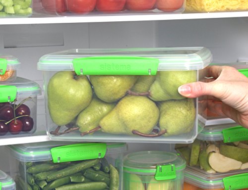 Sistema Fresh Collection Rectangle Food Storage Container, 12.6 Cup, Clear/Lime Green