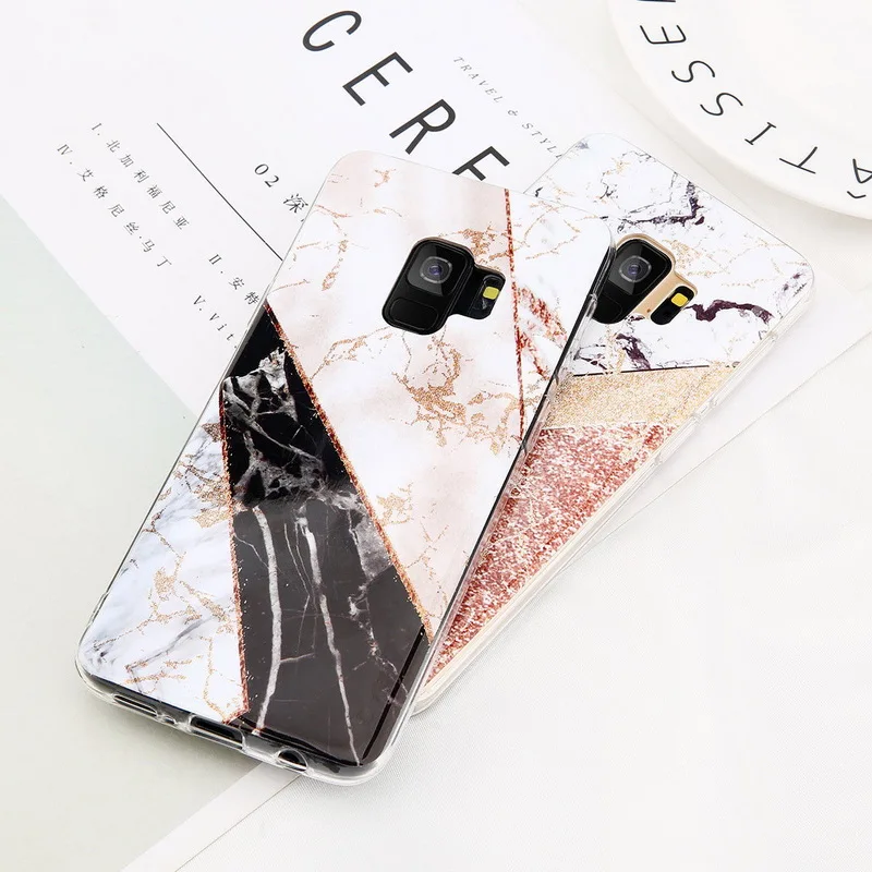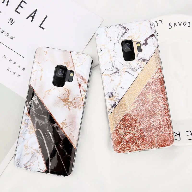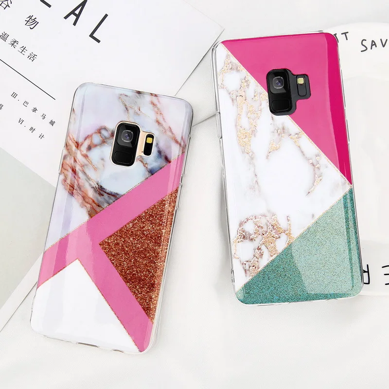 Features:Fashion Splice Marble Glitter Pattern Phone Case Cover