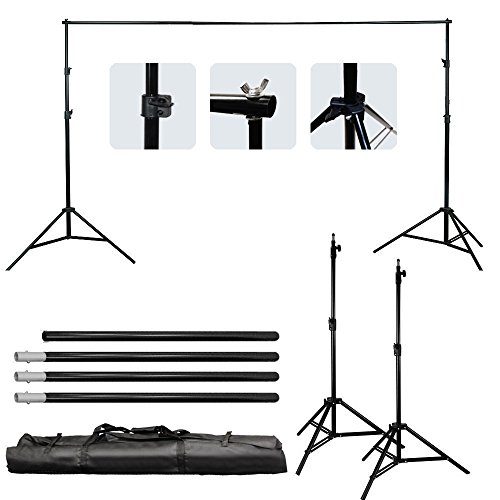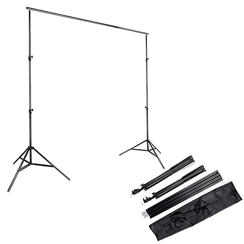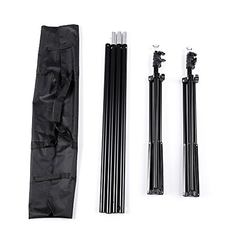 The background stands are made from aluminum alloy, giving them excellent strength for holding up any variety of backgrounds. Quick single action safety locks make set up a breeze. Easily change the height of the background stand with the quick adjustment levers. For simple storage and transport, the stand collapses easily and is very lightweight to carry. The stands are compliant with industry standards and can be used to support all major photo equipment including reflectors, softboxes, lights, umbrellas, backgrounds and more. 0