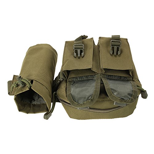 -. Feature : High-density 1000D Nylon fabric and quality ABS buckle, light weight Small and compact, you can carry it anywhere with ease. / Five different size pockets fully meet your basic outdoor needs: The large main compartment is big enough for carrying your glasses, keys, MP3, food, tools, etc. / The zippered front pocket is for extra protection about your passport, ID card, Credit card, wallet and essential stuffs. / The two buckle pocket can be used to hold your phone and cigarette. And one removable bottle holder. / Perfect for jogging, walking, cycling, hiking, hunting, camping, travel, mountain, trekking, outdoor sports, holidays and leisure life.