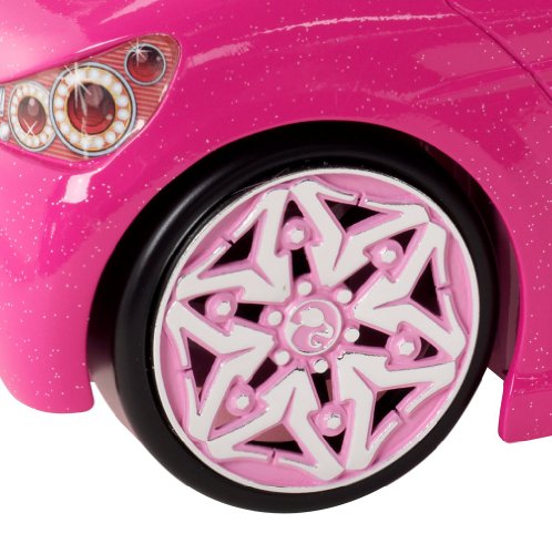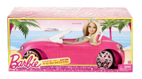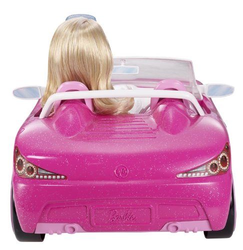 Never has driving been so glam! Barbie takes to the open roads in a bright pink convertible designed for the Malibu Girl herself. Delicate details adorn the wheels and grill, while the paint job sparkles. There’s even a pearl necklace design around each headlight! And a personalized license plate makes clear just who this car was made for. Built for two, Barbie doll (sold separately) can bring along a friend to double the driving fun. But both passengers in this vehicle will have to buckle up with the provided seatbelts because it’s always safety first! Dolls not included. Ages 3 and older.Feature