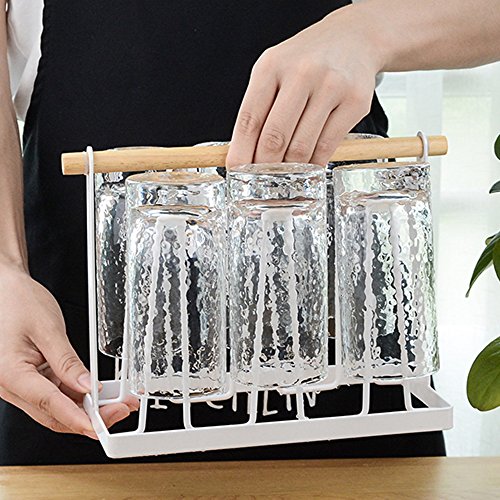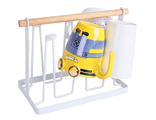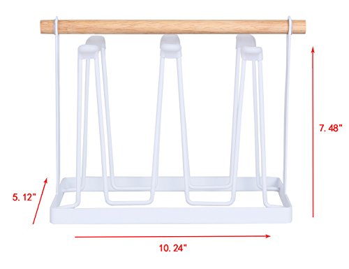 Cup Coffee Tea Mug Holder for Kitchen Cabinets 6 Hooks Storage Rack Cup Shelf(White)