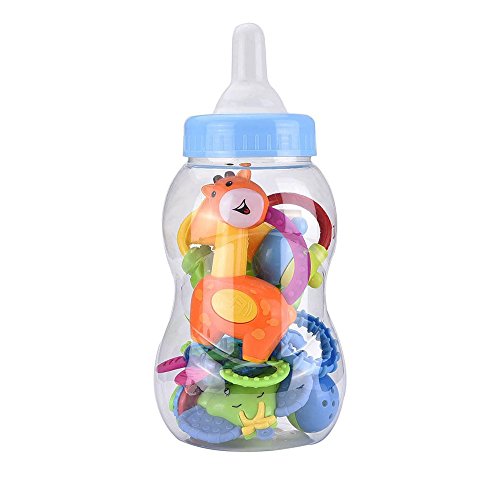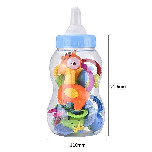 • Baby rattle toy set has a feeder-bottle with 6 pieces hand grasp teethers which can attract baby's attention