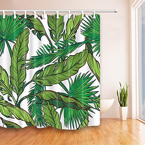 KOTOM Tropical Banana Leaves Palm Trees Waterproof Fabric Shower Curtain, Hooks Included, 71X71 inch