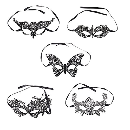 Coolrunner 5 Style Girls Women Black Sexy Lady Lace Mask Cutout Eye Mask for Masquerade Party Fancy Dress Costume