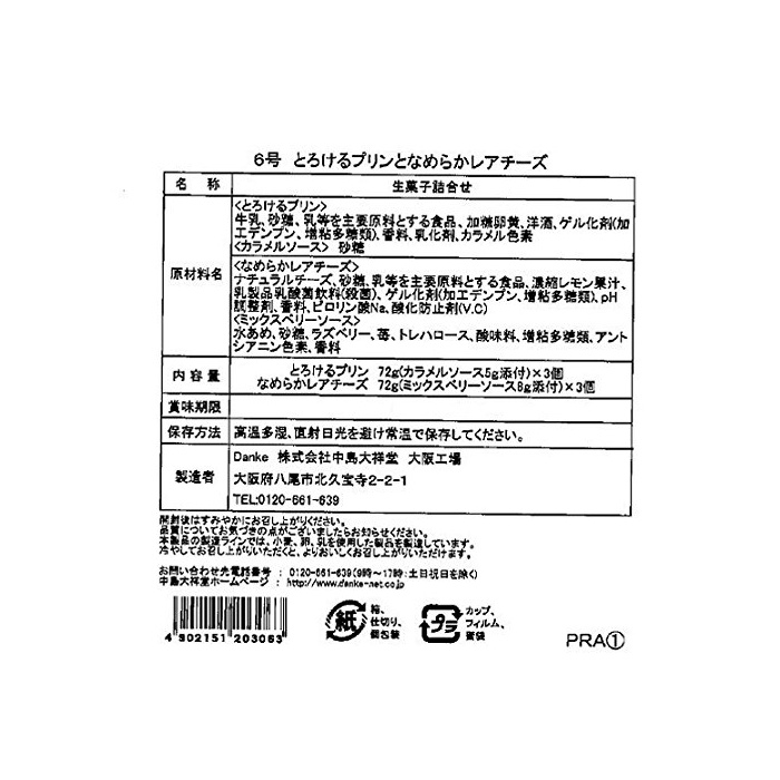 원본상품명: Danke とろけるプリンとなめらかレアチ?ズ 6?