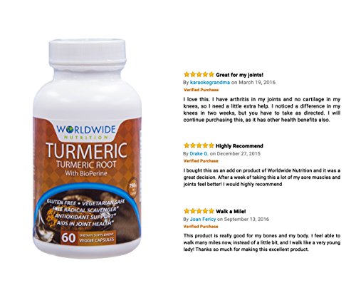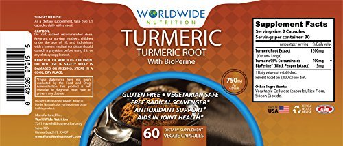 -. Binding : Health and Beauty -. Brand : World Wide Nutrition -. EAN : 0637776671341 -. Feature : WHAT IS TURMERIC CURCUMIN? Turmeric has been widely regarded as possibly being one of the most effective nutrition supplements in existence. A multitude of high quality studies show that it has major benefits for your body and brain and contains many compounds with medicinal properties - otherwise known as CURCUMINOIDS. CURCUMIN is the main active ingredient in turmeric. It has powerful anti-inflammatory effects and is a very strong antioxidant. / NATURALLY OCCURING SUPERFOOD IN CAPSULE FORM: Our highly concentrated capsules are 100% natural and have enormous health benefits with powerful antioxidant and anti-inflammatory properties. / POTENT AND EFFECTIVE - 95% CURCUMINOIDS!: Our Turmeric Curcumin contains Turmeric extract with 95% curcuminoids - maximizing potency and effectiveness. Our high curcuminoids level ensures purity in our product and makes it one of the highest quality supplements that is jam packed with antioxidants! Our product contains 5mg of BIOPERINE (Patented Black Pepper Extract) for ENHANCED ABSORPTION / FORMULATED AND MANUFACTURED BY INDUSTRY EXPERTS IN THE USA!: All of our formulas are manufactured in the USA at an FDA-inspected and GMP-certified facility / MADE WITH ALL NATURAL INGREDIENTS! GMO FREE, GLUTEN FREE AND VEGETARIAN SAFE! -. IsAdultProduct : 0 -. Label : Worldwide Nutrition -. Manufacturer : Worldwide Nutrition -. MPN : 8652996 -. PackageQuantity : 60 -. PartNumber : 8652996 -. ProductGroup : Health and Beauty -. ProductTypeName : HEALTH_PERSONAL_CARE -. Publisher : Worldwide Nutrition -. Studio : Worldwide Nutrition -. Title : World Wide Nutrition Turmeric Curcumin, 60 Capsules -. UPC : 794168652996