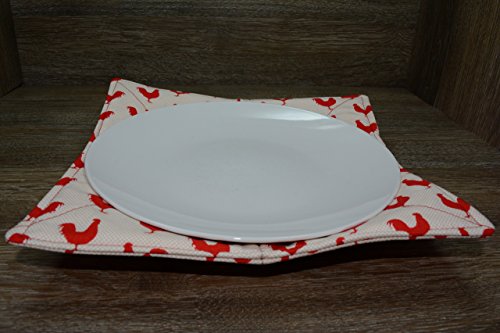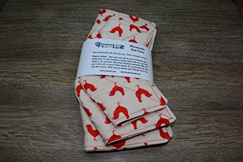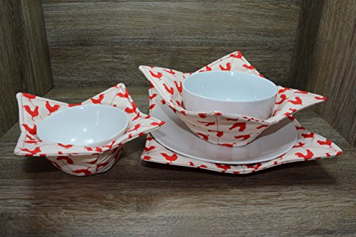 Product Description Microwave cozy set includes 1 small bowl cozy (Approx 6.5" sq), 1 medium bowl cozy (Approx 8" sq), 1 dinner plate cozy (Approx 10" sq.) The dinner plate cozy can also be used for round casserole dishes and the small size is great for coffee mugs! These microwave cozies are the perfect solution to handling super-hot dishes. Cooking and reheating food in a dish cozy makes life so much easier! Place your microwaveable dish inside the bowl cozy and put the whole thing in the microwave to heat. To take the bowl out, you simply grab the corners of the cozy. We found that our kids can now get their dishes out of the microwave safely. Cozies will also protect your fingers from the cold when holding a bowl of ice cream and are great for protecting your table. You can also use a cozy placed on top the dish you are microwaving to help steam food. MATERIALS: * 100% cotton fabric * 2 layers of 100% cotton batting * 100% cotton thread Please be advised: Bowl cozies must only be used in microwaves with a rotating base. To avoid scorching or burning, please make sure cozy freely rotates in your microwave. Never leave microwave unattended. Make sure cozy is clean with no pieces of food attached. Do not microwave cozy for more than three minutes. Cozies can be machine washed on delicate cycle. Reshape and allow to air dry for best results. Please let us know if this is a gift, and we will ship without a packing slip enclosed! #bowlcozy #microwaveable #handmadeatamazon #hot4handmade #buyhandmade 0