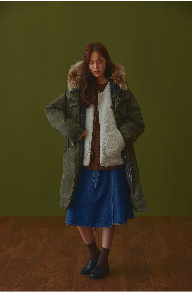 소재 겉감-면100%털-라쿤털 안감-폴리에스터100%충전재-거위솜털80%거위깃털20%