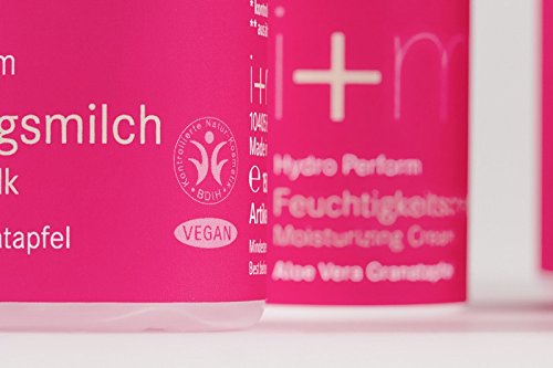 -. Feature : Die reichhaltige Gesichtspflege für Tag und Nacht regeneriert und versorgt die Haut nachhaltig mit Feuchtigkeit. Wirksame Antioxidantien des Granatapfels und Vitamin E schützen vor freien Radikalen und unterstützen die Repair-Funktionen der Haut. Zum sanften Einmassieren in die Haut. / Hydro-Perform Serie für normale bis trockene Haut: Den Streit der drei griechischen Göttinnen Hera, Athene und Aphrodite, wer die Schönste von ihnen sei, beendete der Trojaner Paris, indem er Aphrodite einen Granatapfel überreichte. Heute kann sich die moderne Göttin entspannt zurücklehnen und sich selbst zur Schönheit küren: Die einzigartigen Wirkstoffe des Granatapfels stehen im Zentrum der i+m Hydro-Perform Serie und schenken normaler bis trockener Haut eine vitale Ausstrahlung. / Hydro-Perform Duftthema: Eine Blumenwiese nach dem Regen (blumig, prickelnd, anregend). Edler Auftakt von herb-fruchtiger Grapefruit und Geranium. Ein edles Bouquet aus samtiger Rose, frischem Jasmin und floral-würzigem Veilchen bilden die Herznote. In der Basis harmonisiert feinstes Rosenholz. / BDIH-zertifiziert. Vegan. / Antioxidanten des Granatapfels neutralisieren effektiv freie Radikale und unterstützen den natürlichen Regenerationsprozess der Haut. Die Kraft des Granatapfels hat i+m in der Hydro-Perform Serie mit natürlichen Wirkstoffen wie Aloe Vera, biotechnologisch gewonnenem Hyaluron, regenerierendem Vitamin E und vitalisierendem Grapefruitextrakt kombiniert. Das Ergebnis ist eine außergewöhnlich effektive Pflegeserie, die Feuchtigkeit spendet und den natürlichen Regenerationsprozess der Haut unterstützt. Die Haut wird beruhigt und revitalisiert.