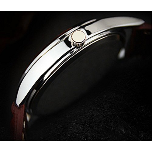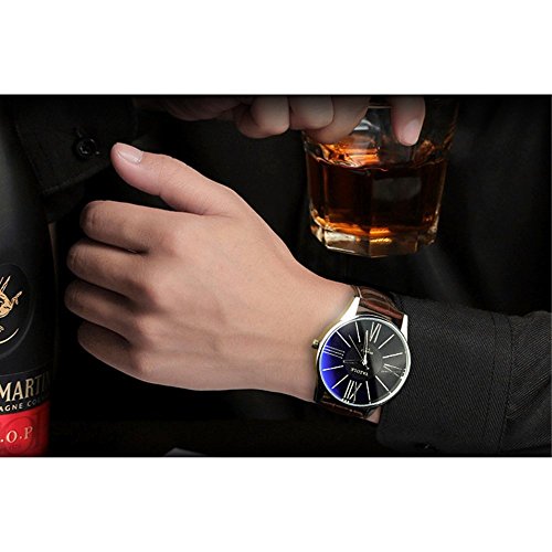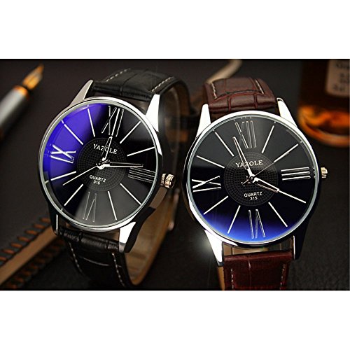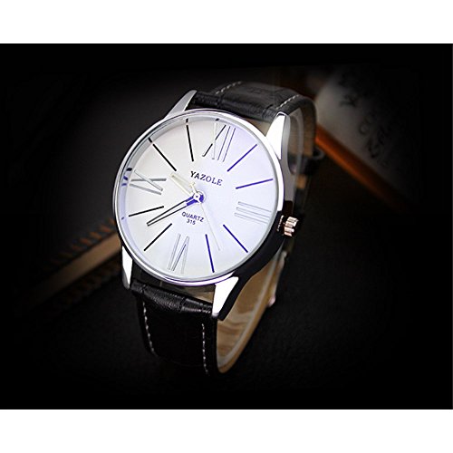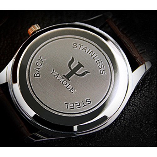 YAZOLE 맨즈 남성 초박형 손목시계 레더 가죽 벨트 비지니스 워치 심플 슈트 (화이트&브라운)