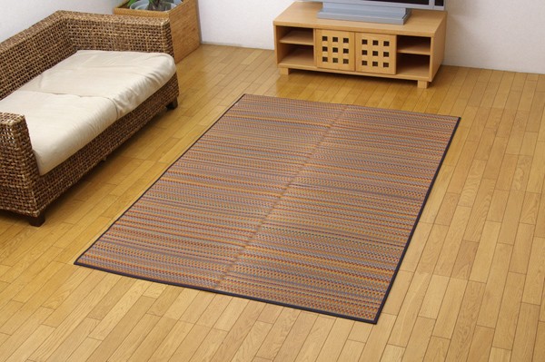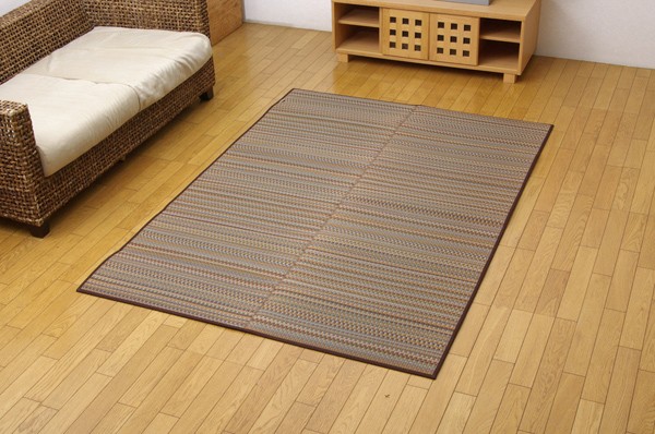 多色を使いながらも落ち着いた雰囲気に仕上げたイ草カーペットです。ベージュ、ブルー、ブラウン、グリーンの4色展開です。お部屋に合わせてお好きな色をお選び下さい。国産(九州産)のい草を使用しています。一本一本が太く、表皮が厚く繊維がキメ細かいので弾力性があり、耐久性に優れています。い草には空気の自然浄化作用、湿度の調節作用などがあります。また汚れにくく、使用するうちに黄金色に変化し味が出ます。い草に青森ヒバ加工を施しています。(抗菌、防臭効果)