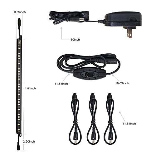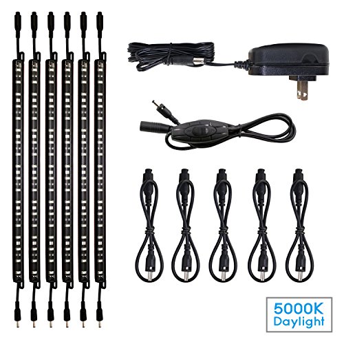 - NO.1 Best-Selling LED lighting kit on Amazon: (6) 12’’ LED light bars + rocker switch+ UL-Listed A/C Power adapter + (5) extra 12’’ extension cables
