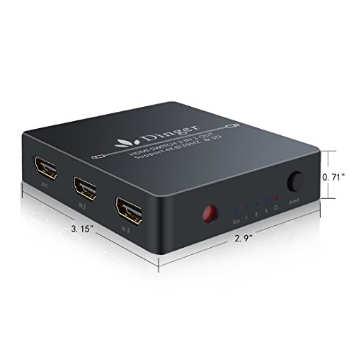 Dinger HDMI Switch, 3 Port 4K HDMI Switches Box IR Wireless Remote Control and USB Charger Cable, HDMI Video Switcher Hub with Supports Full HD 1080P 3D