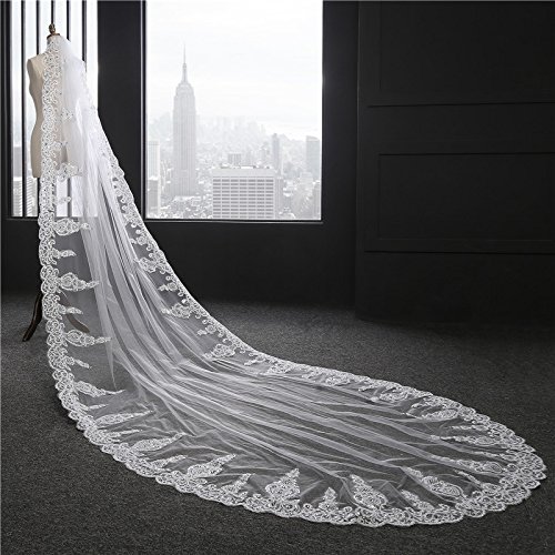 Binding : Apparel Product Description Ever Lovely Lace Edge Cathedral Length Long Stunning Crystal Sequins Bridal veil with Comb (138 inches)
