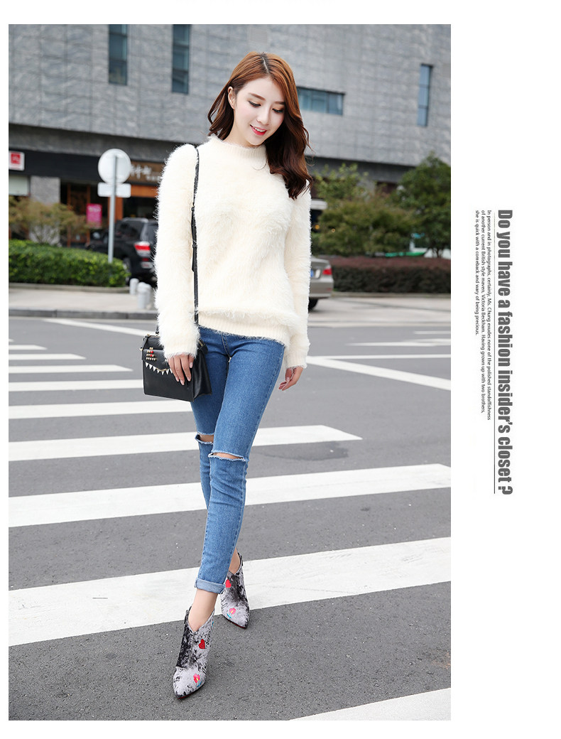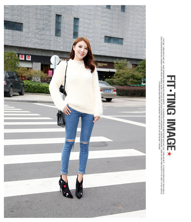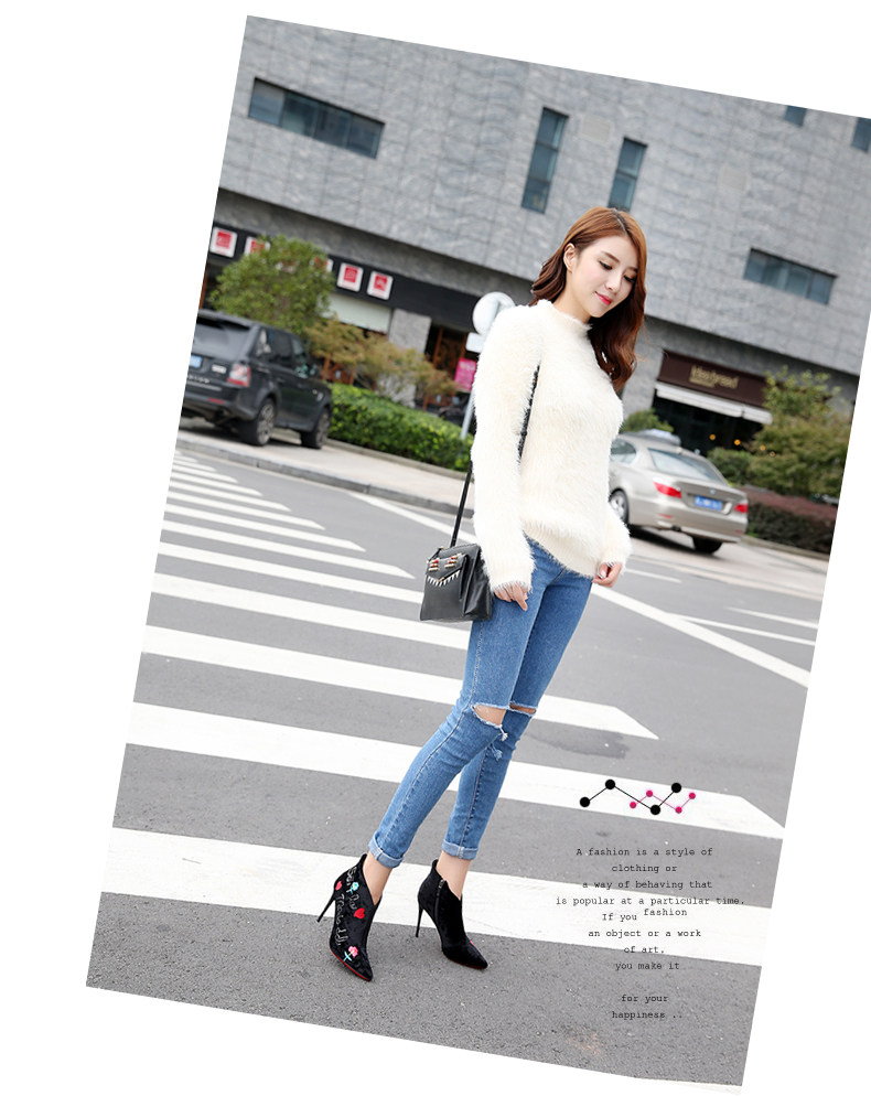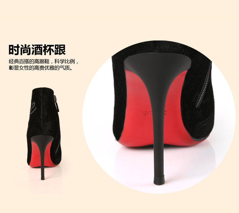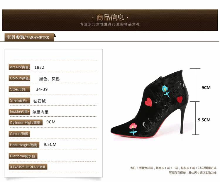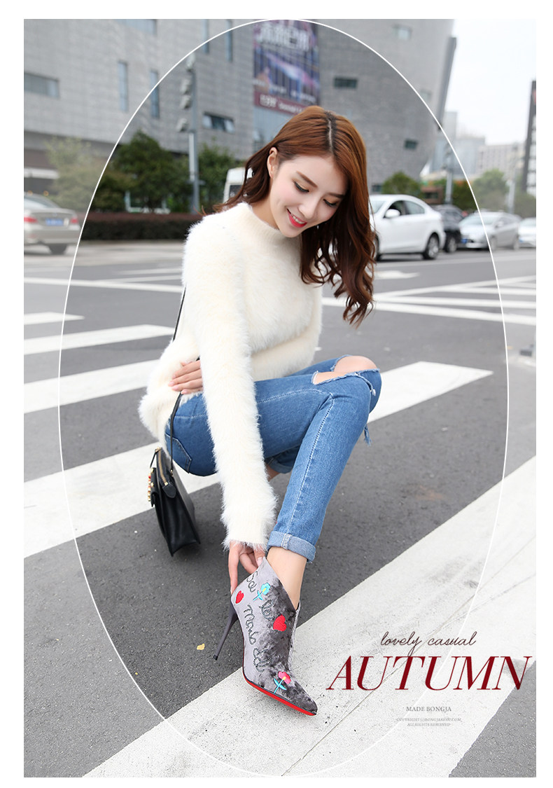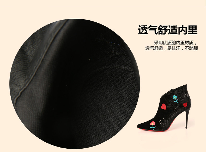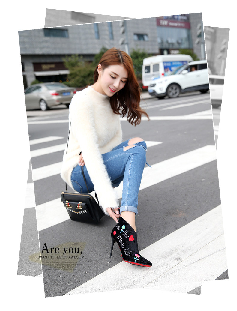 欧美名媛短靴秋冬靴子细跟高跟鞋尖头时尚绣花马丁靴女靴及裸靴