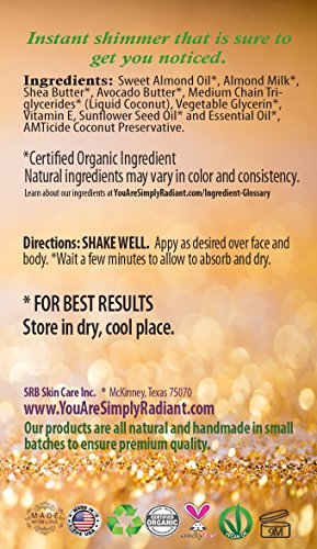 Organic Shimmer Bronzer Lotion | Moisturizing Shimmer Lotion Great For All Skin Types Shimmer & Sparkle Glimmer Goddess