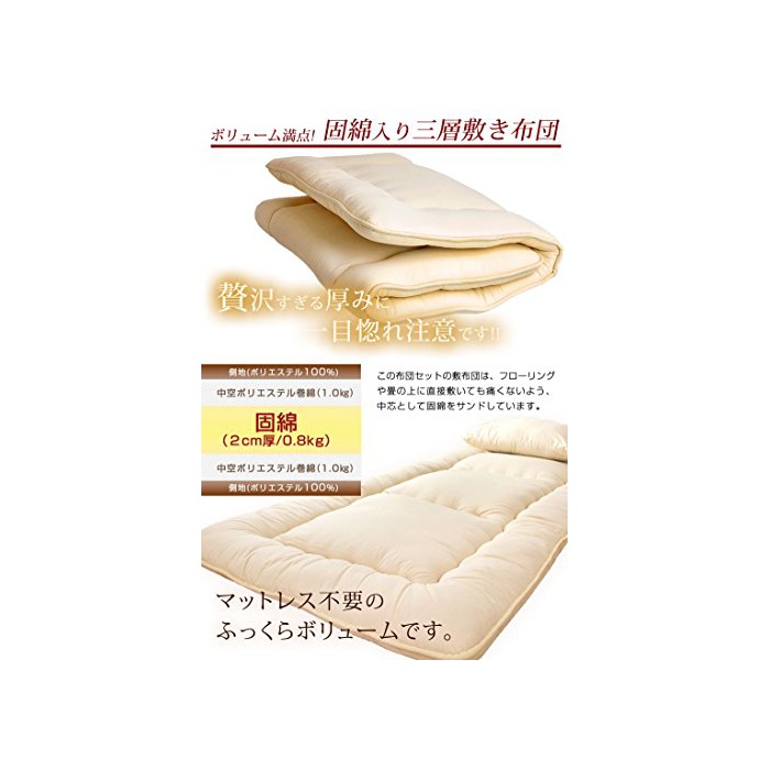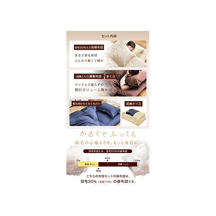※본체의 색은 아이보리가 되어 있습니다.【세트 내용】날개 괘이불 / 괘이불 커버 / 고 면들어감3 층요 / 요 커버 / 베개 / 베갯잇 / 수납 케이스