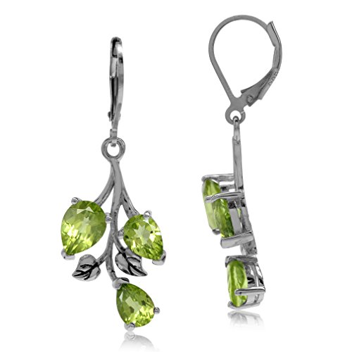 5.52ct. Natural Peridot 925 Sterling Silver Leaf Leverback Dangle Earrings
